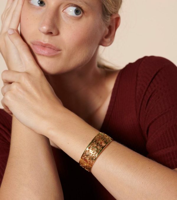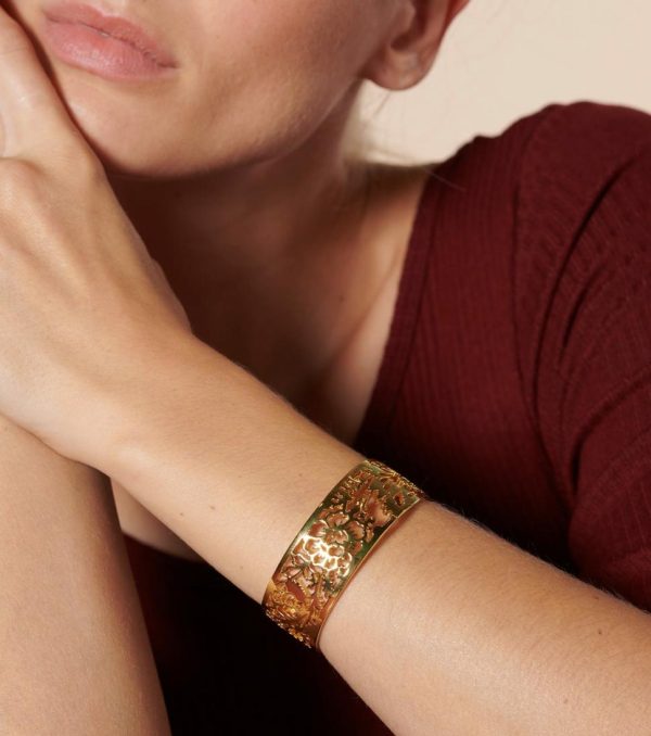 Souleiado Bijoux | Femme/Homme Manchette Floral Dorée Laiton