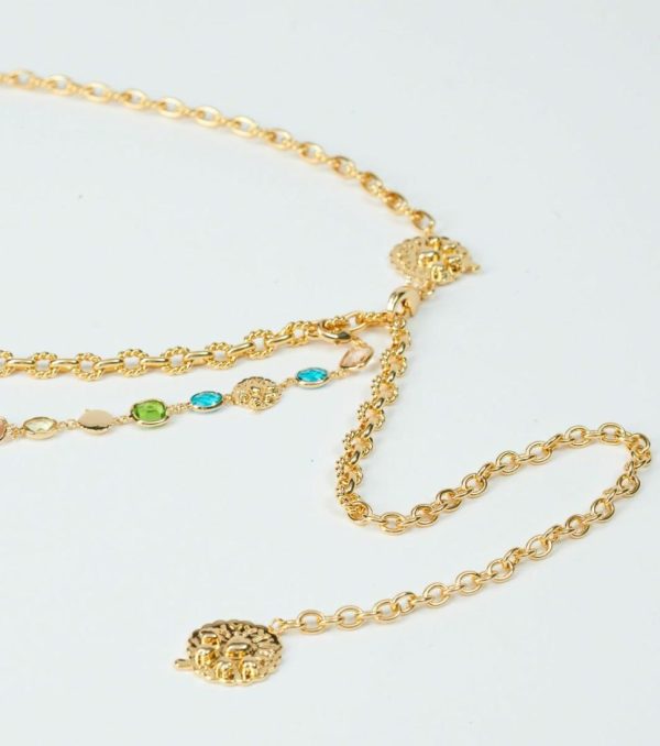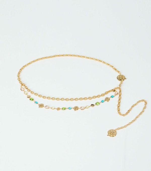 - Ceinture bijoux réglable en chaine double doré avec fermoir.