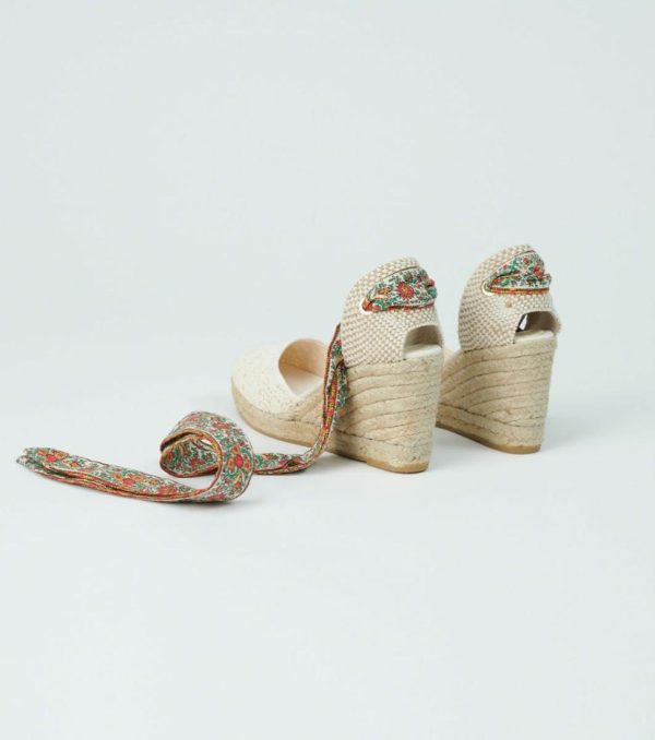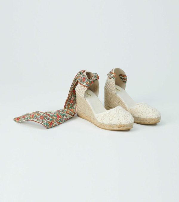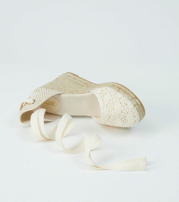 - L’espadrille est également proposée avec un lien en coton écru uni