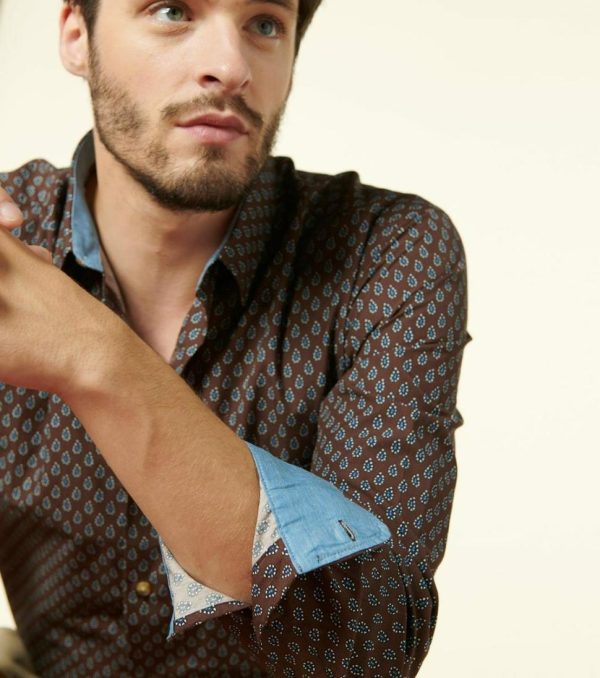 - Chambray en opposition intérieur pied de col et intérieur poignet