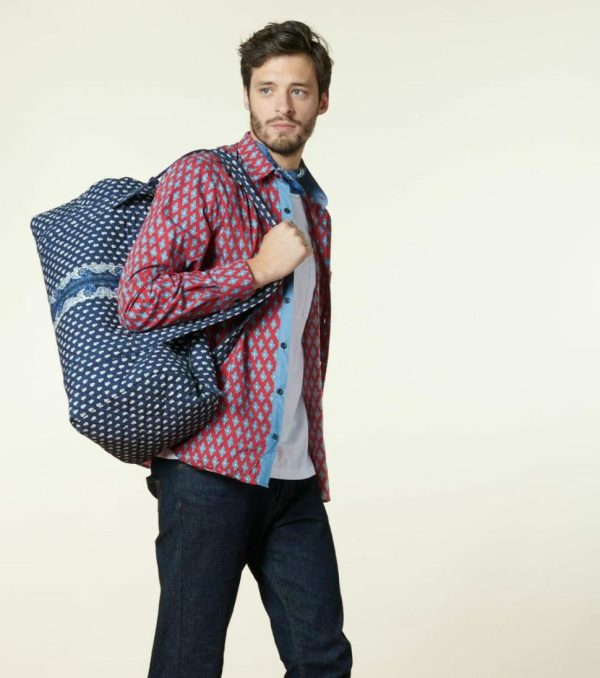 - Chambray en opposition sous gorge, intérieur pied de col et intérieur poignet