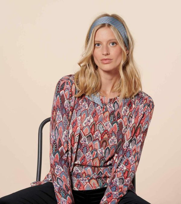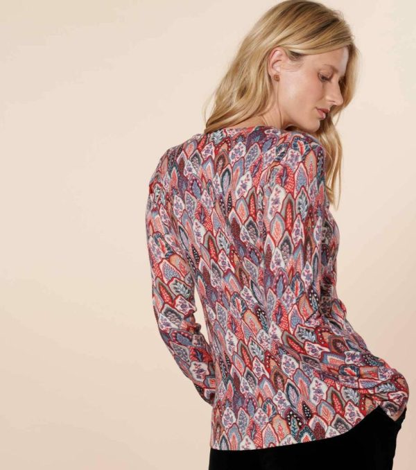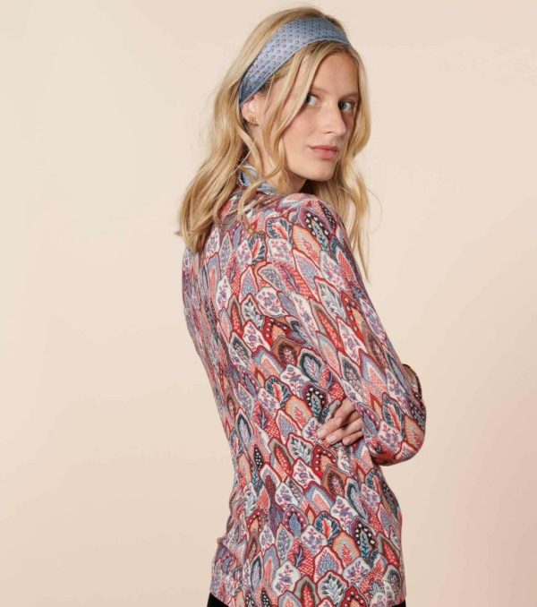 - Pull fin en maille imprimée Plume Rouge en laine et soie (75% laine, 25% soie)