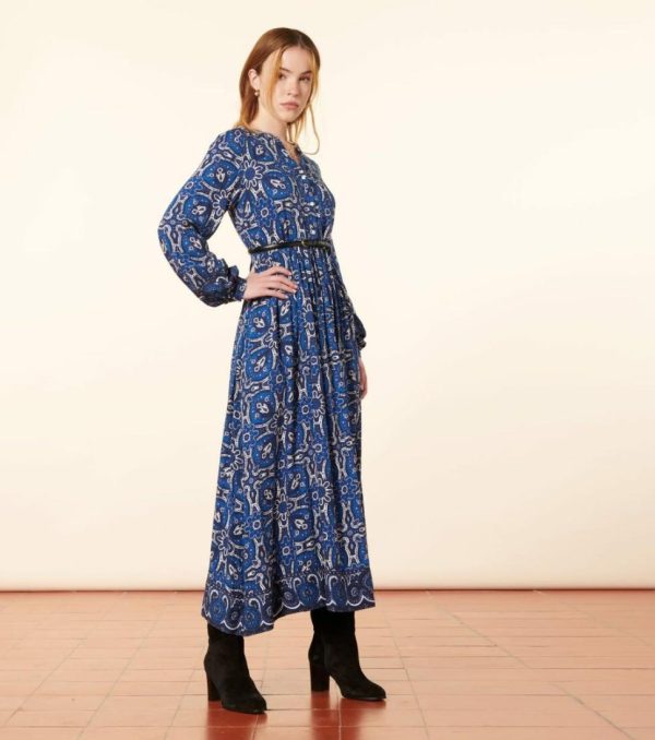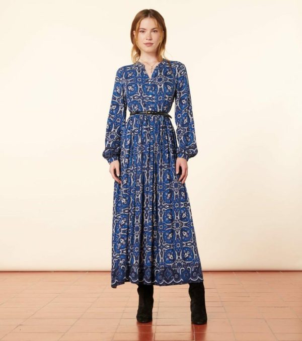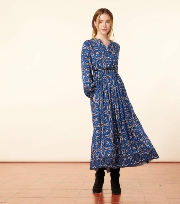 Souleiado Robes | Femme Robe BJORK Azulejos Bleu Blanc Bleu & Blanc