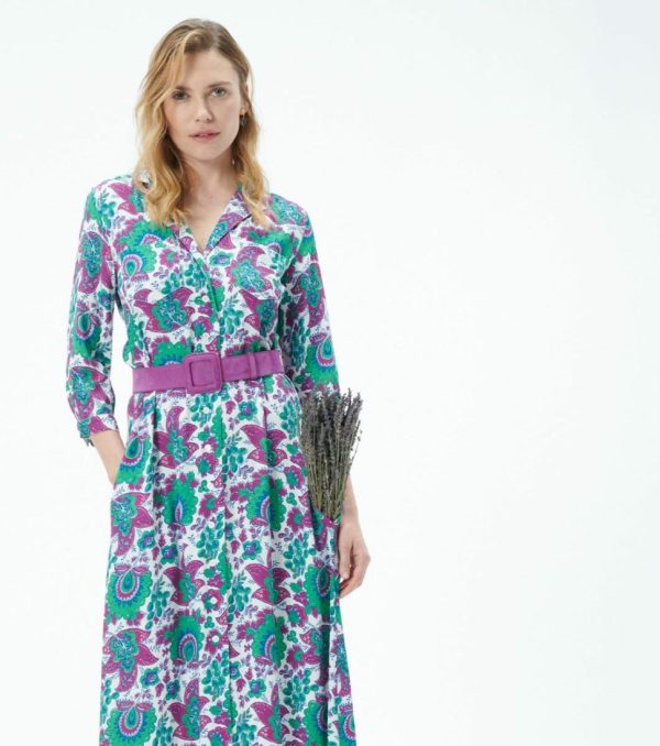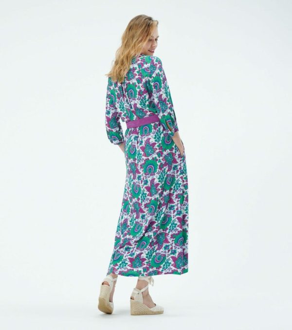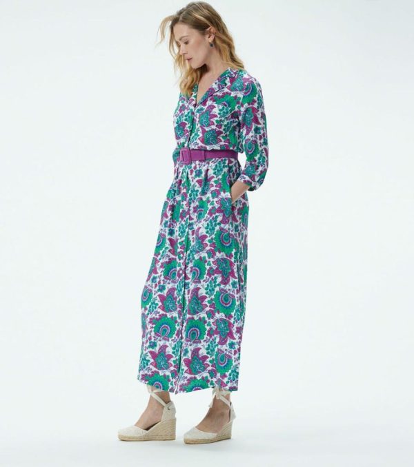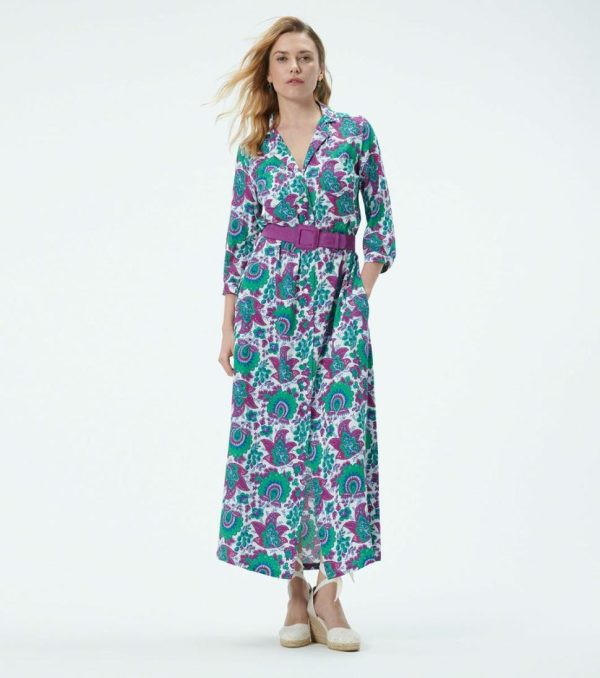 - Robe longue de type chemisier en crêpe de viscose imprimé