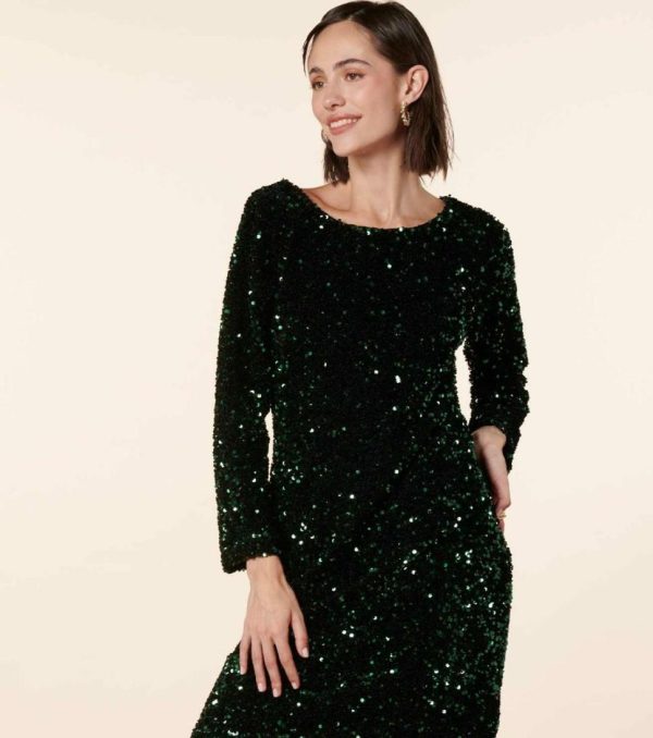 - Robe droite, en joli sequins vert appliqué sur un velours noir