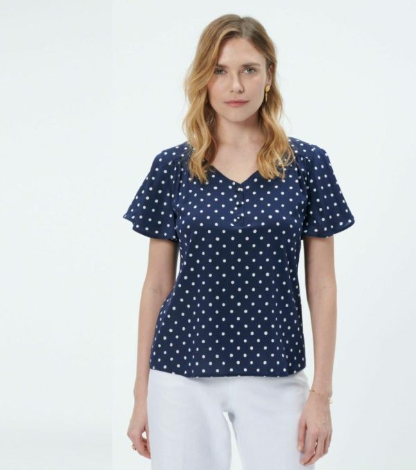 - Encolure en « V » avec patte de boutonnage milieu devant fermée par 3 boutons recouvert