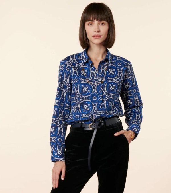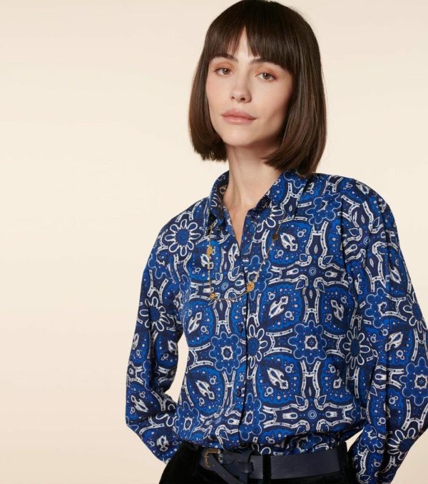Souleiado Tops & Chemises | Femme Chemise DIEGA Azulejos Bleu Blanc Bleu & Blanc
