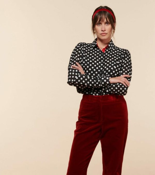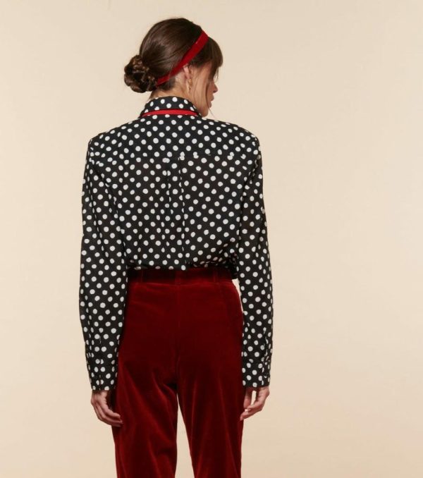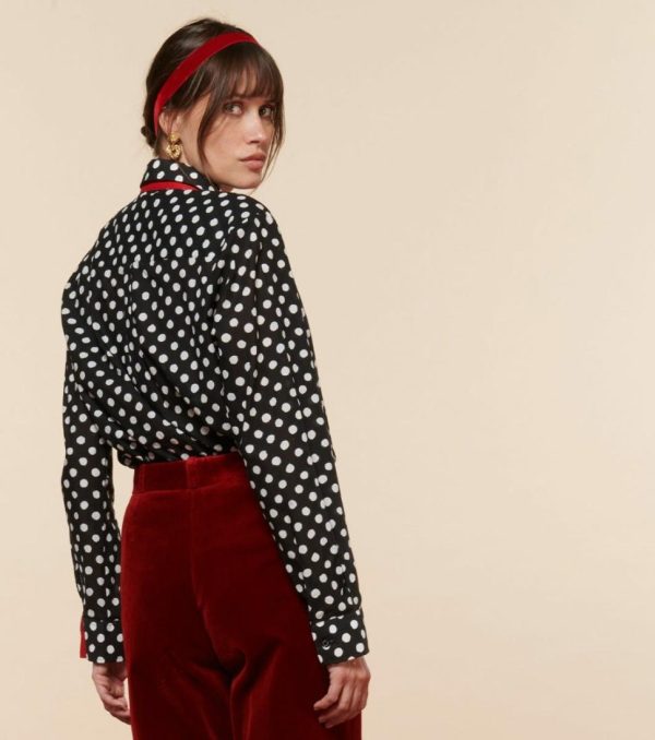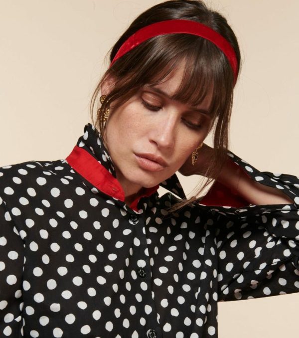 - Opposition rouge uni au pied de col, poignets intérieur et sous gorge