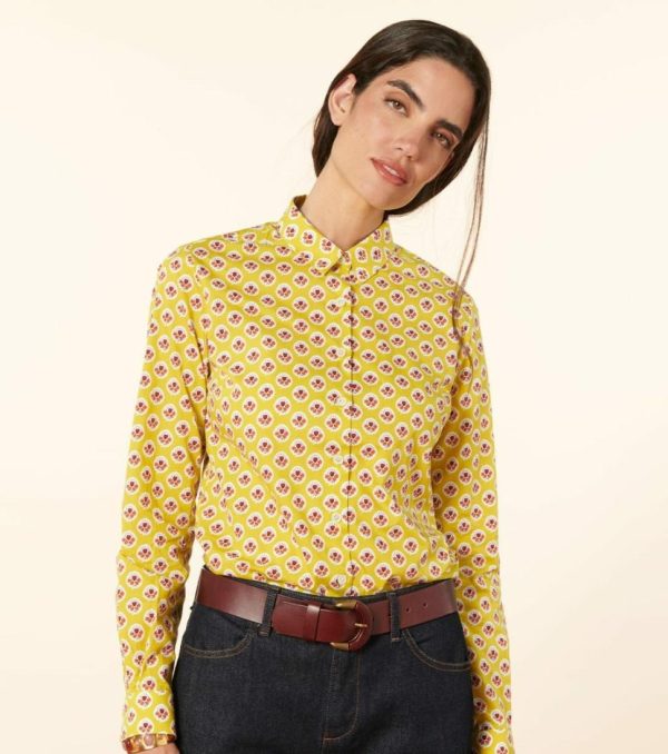 Souleiado Tops & Chemises | Femme Chemise ELINA Fleur D’Arles Lime Rouge, Motif Traditionnel Provençal Lime & Rouge